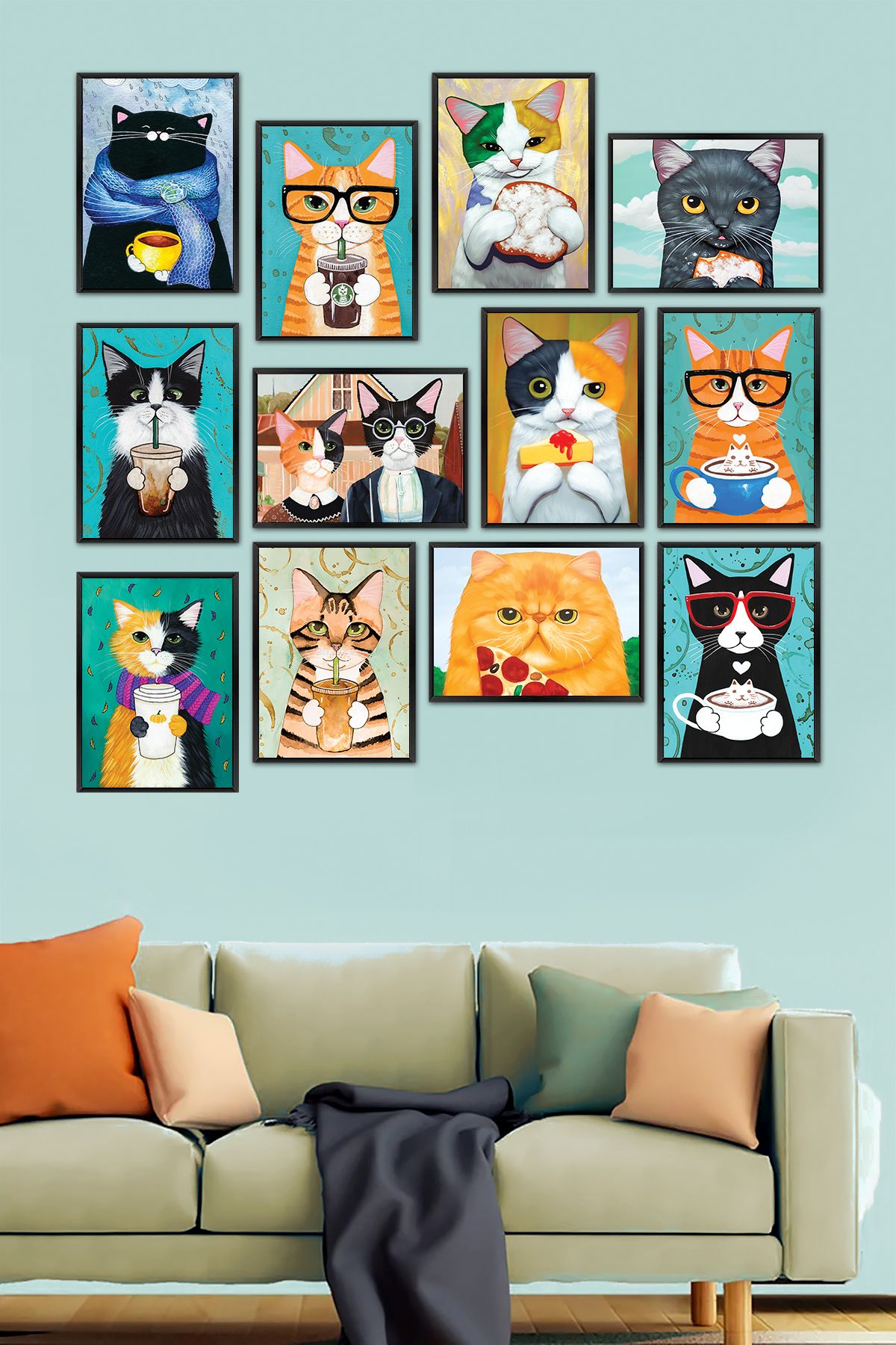 Bu özel set, sevimli ve enerjik kedi temalarıyla yaşam alanınıza canlılık ve pozitif enerji getirecek. Her bir parça, özenle seçilmiş ve tasarlanmış kedi resimleriyle evinizin her köşesine ayrı bir hikaye anlatır. 12 parçadan oluşan bu tablo seti, salonunuzdan yatak odanıza, çalışma odanızdan çocuk odanıza kadar her mekanda göz alıcı bir dekorasyon öğesi olacak.