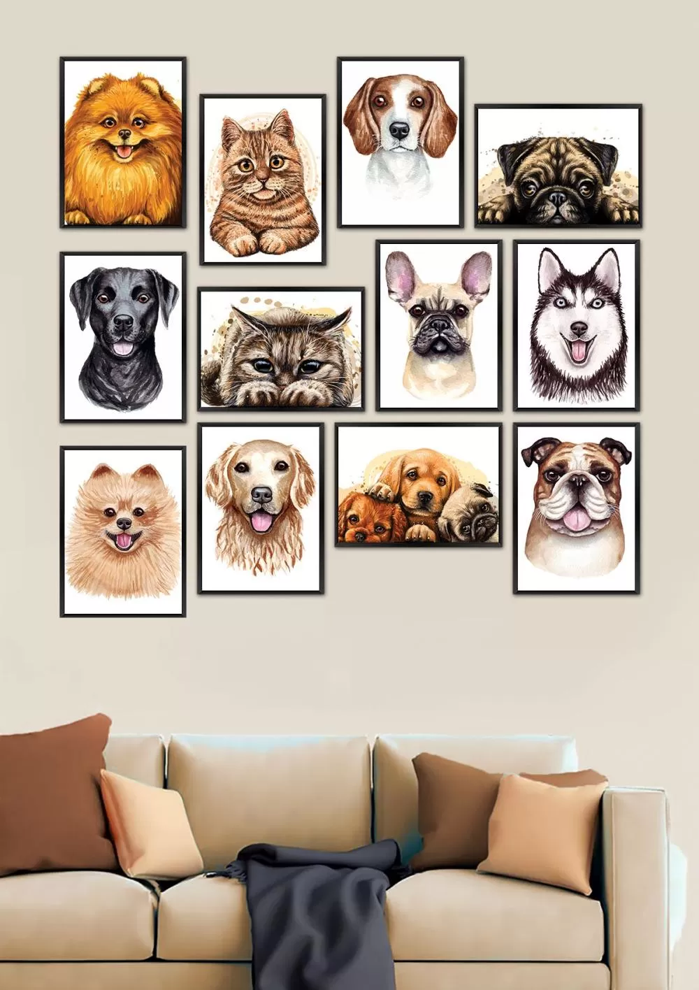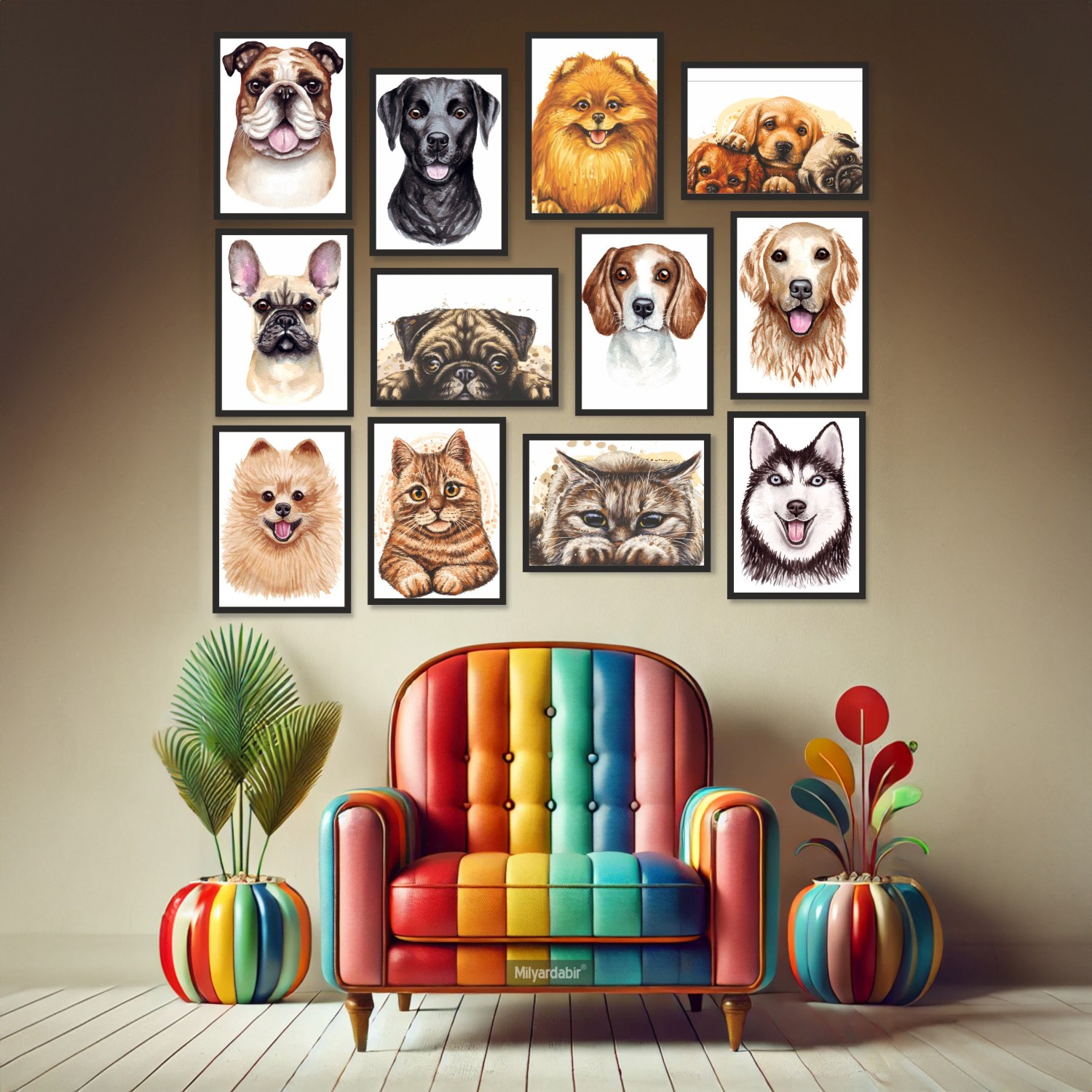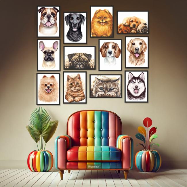 12 Parça Çerçeve Görünümlü Mdf Tablo Seti