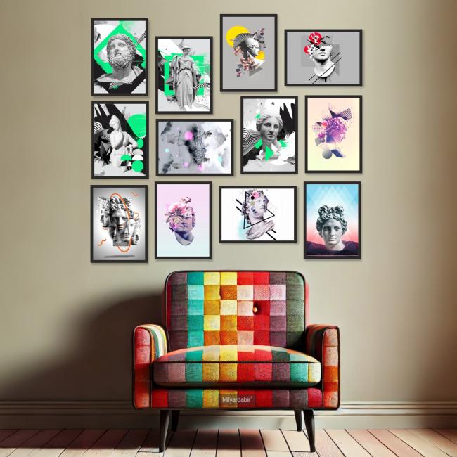 12 Parça Çerçeve Görünümlü Mdf Tablo Seti