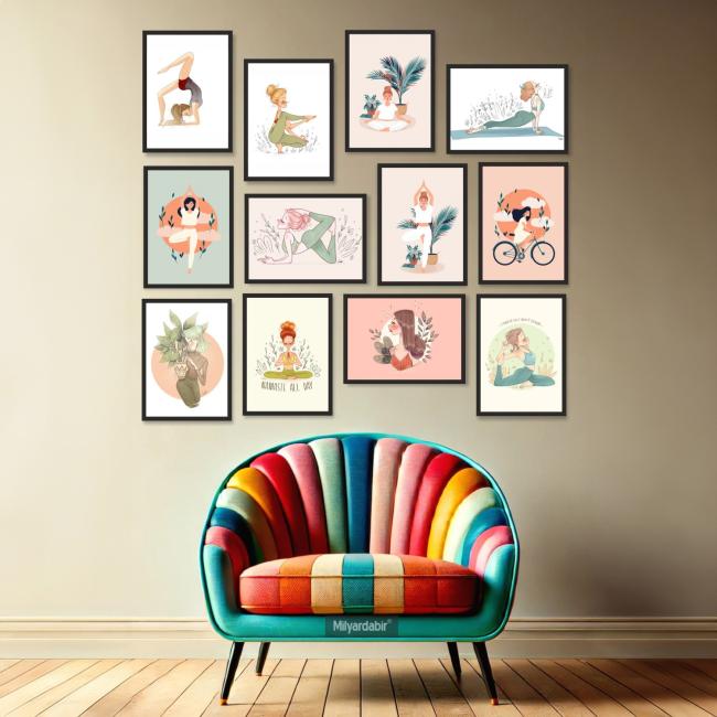 12 Parça Çerçeve Görünümlü Mdf Tablo Seti