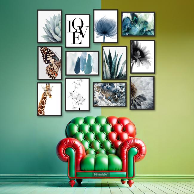 12 Parça Çerçeve Görünümlü Mdf Tablo Seti
