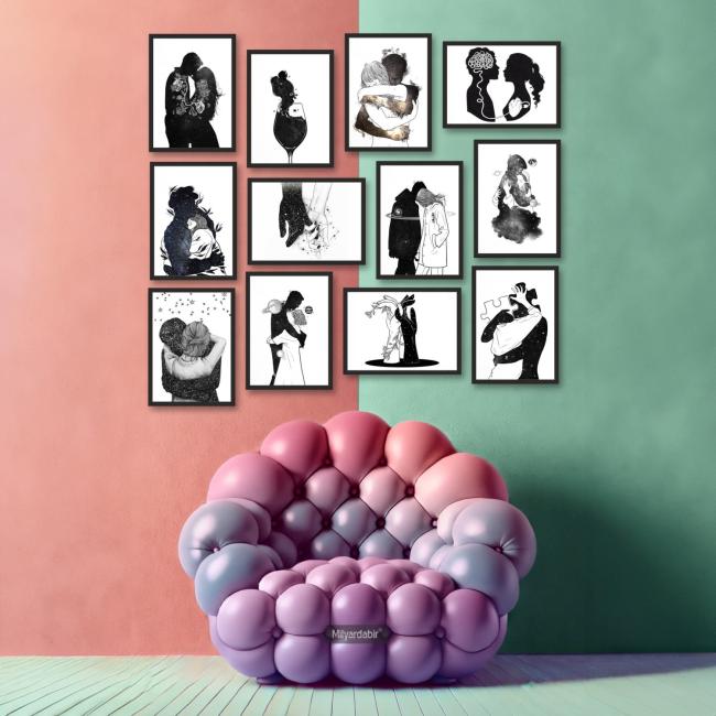 12 Parça Çerçeve Görünümlü Mdf Tablo Seti