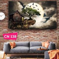 Dolunay ve Uçurumdaki Kulübe Hayalperest Kanvas Tablo