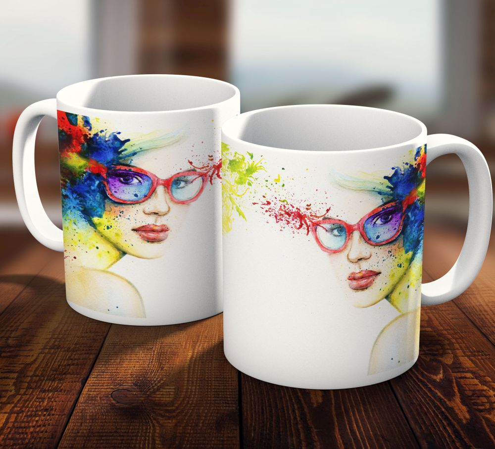 Gözlüklü Kadın Hediyelik Kupa Bardak