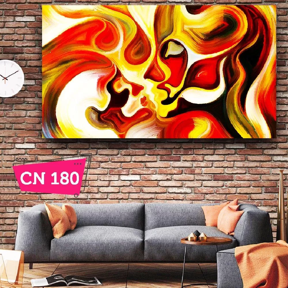 Kırmızı Soyut Yağlı Boya Resim Sevgililer Kanvas Tablo
