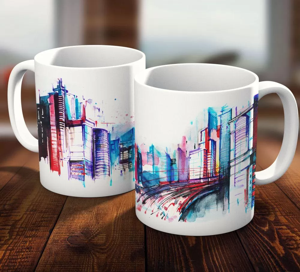 Metropol Şehir Sulu Boya Tablo Hediyelik Kupa Bardak