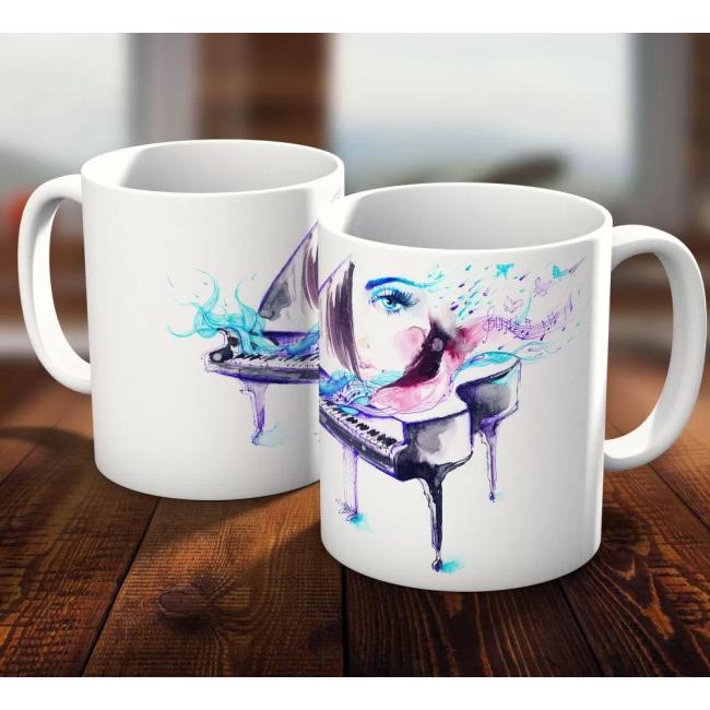 Piyano ve Kadın Figürlü Hediye Kupa Bardak