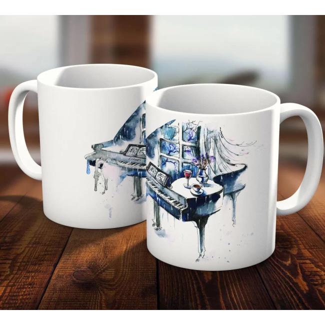 Piyano ve Şarap Özel Gün Hediye Kupa Bardak