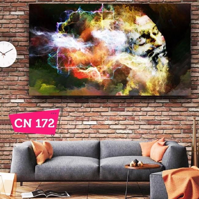 Renkli Dumanlar ve Kadın İllustrasyonu Psikolojik Kanvas Tablo