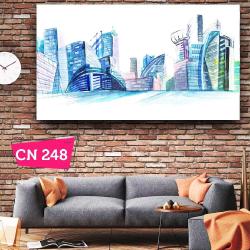 Çizgisel Şehir Görünümü / Ofis Dekorasyonu Kanvas Tablo