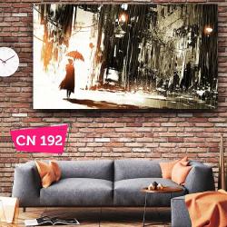 Şemsiyeli Kadın ve Yağmur Romantik Kanvas Tablo